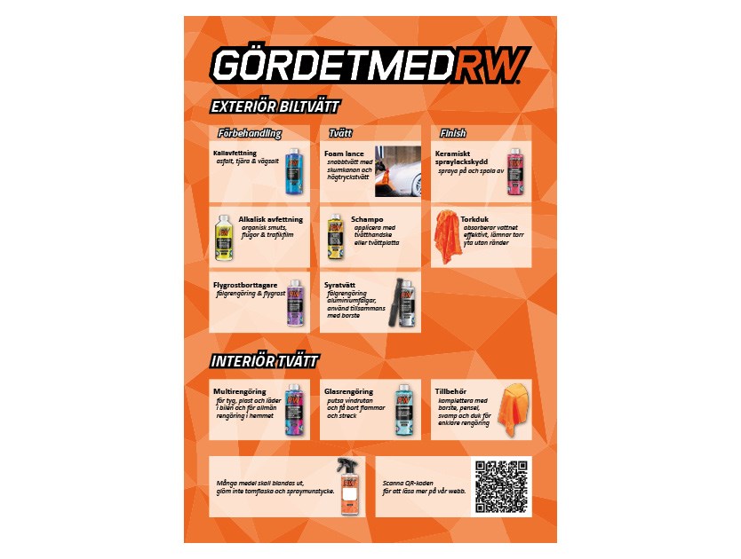 GörDetMedRW erbjuder ett brett och noga utvalt sortiment av bilvårdsprodukter för både exteriör och interiör fordonsrengöring, polering och underhåll. Sortimentet riktar sig till alla som älskar att ta hand om sitt fordon, från entusiasten till den professionella användaren.