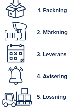 Du tjänar på att få rätt saker, på rätt plats och i rätt tid. Med optimerad varuhantering minskar vi både transporterna och mängden emballage på arbetsplatsen. Märkningar förenklar arbetet och effektiviserar produktionen för kunden.